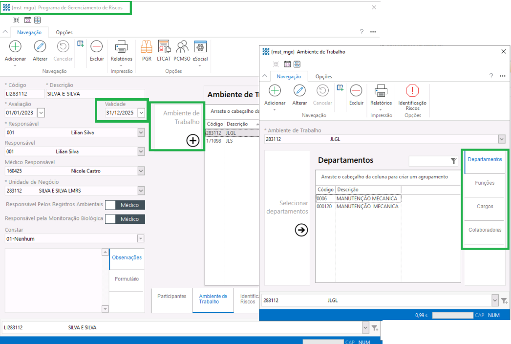 2-Vinculo no ambiente de trabalhado, referente a função/cargo e departamento de acordo com o que o colaborador pertence