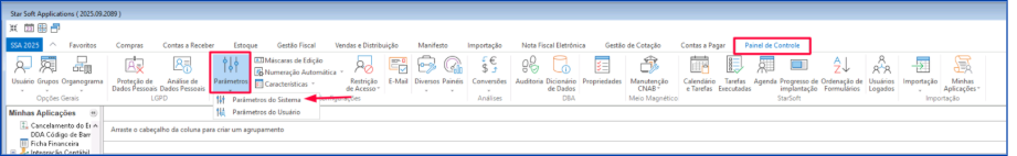 1. Para definir é necessário acessar a tela de parâmetros, acessando: