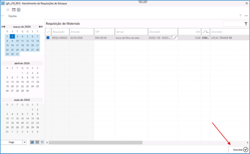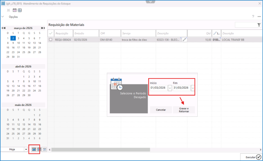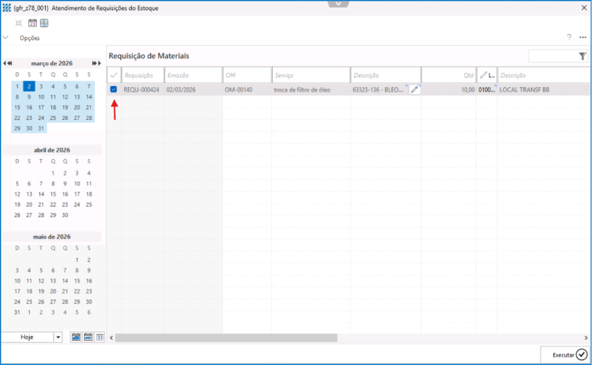 4. Localize e selecione a requisição correspondente.