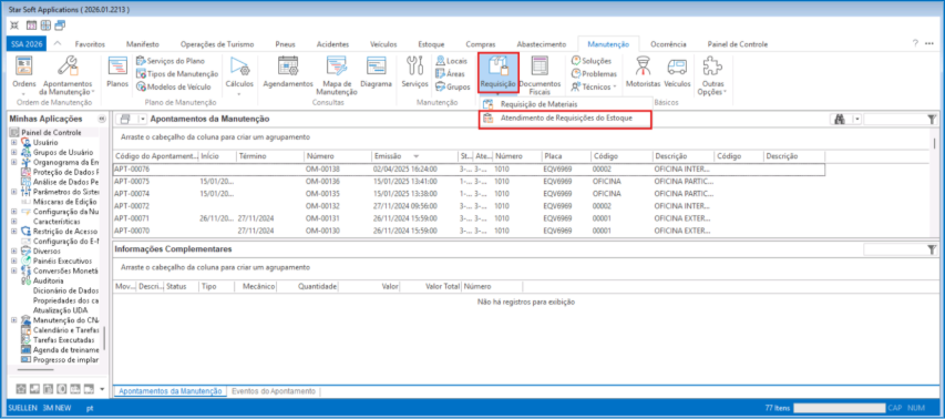 Como gerar atendimento de requisição pela tela de apontamento da manutenção?
