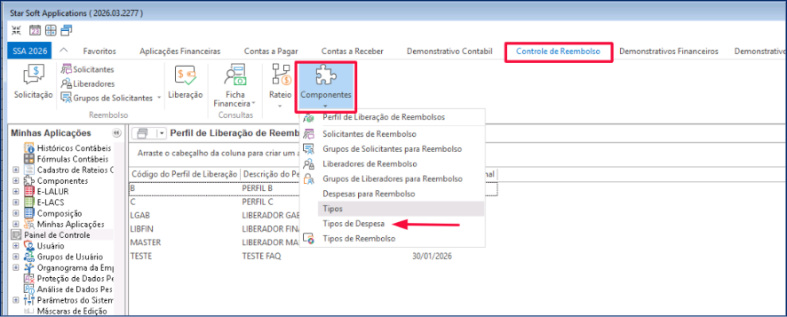 Como cadastrar Tipos de Despesa para Reembolso no StarSoft Applications?
