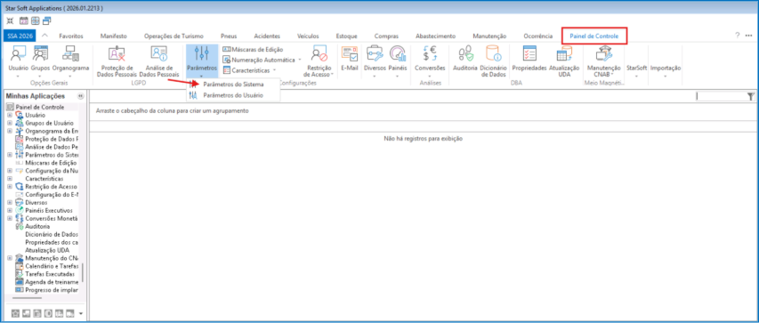 1. Acesse Painel de Controle > Parâmetros.