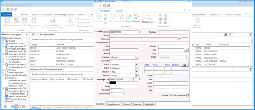 Este guia tem como objetivo facilitar o processo de cadastro de fornecedores, permitindo que o código do fornecedor siga a mesma numeração do CNPJ/CPF. Dessa forma, a identificação fica mais simples, tanto na pesquisa quanto no cadastro.