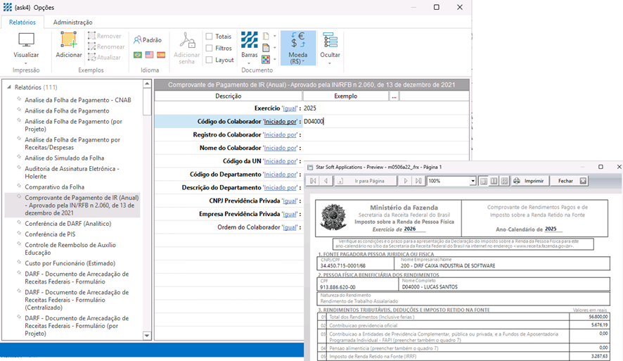 necessárias para uso e emissão do relatório “Comprovante de pagamento IR