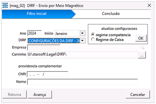 necessário preencher os campos CNPJ Previdência Privada e Empresa Previdência