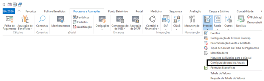 configuração) e os adicione na tela Configuração para os anuais.