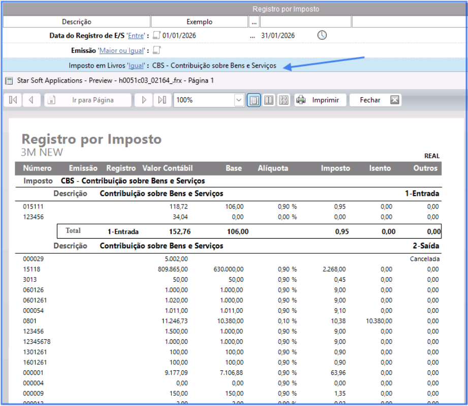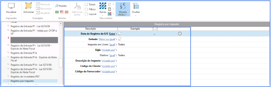 O Relatório de Registro por Imposto tem a finalidade de demonstrar quais impostos foram destacados nos documentos fiscais.