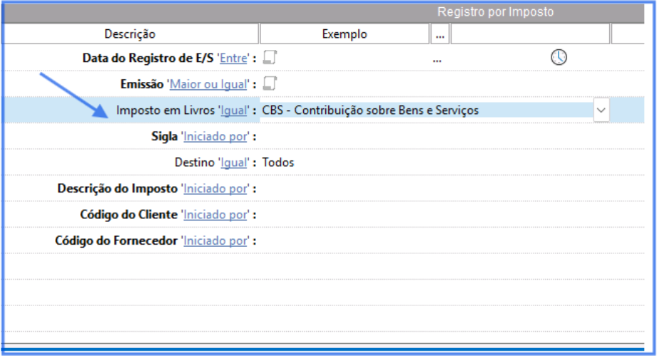 Ao selecionar os filtros de pesquisa, é possível informar o imposto desejado para que o sistema apresente apenas os documentos em que ele foi destacado.