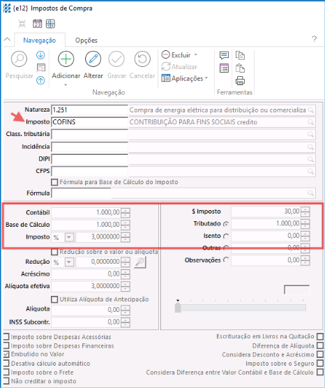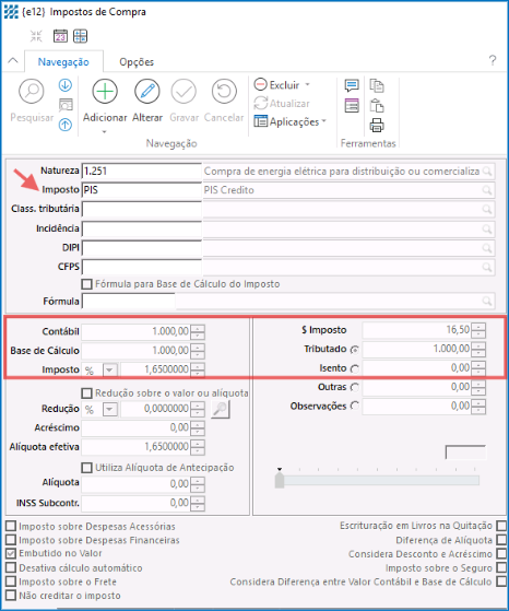 4. Os tributos de PIS e Cofins estejam configurados conforme legislação, incluindo