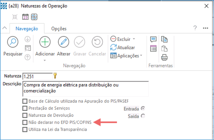 3. A natureza da operação não pode estar configurada para Não declarar no EFD Contribuições.