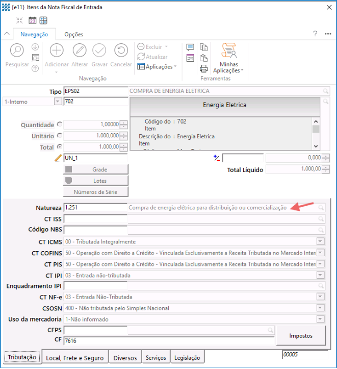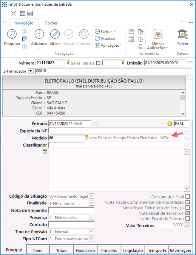 1. Cadastre a nota fiscal como documento de energia elétrica