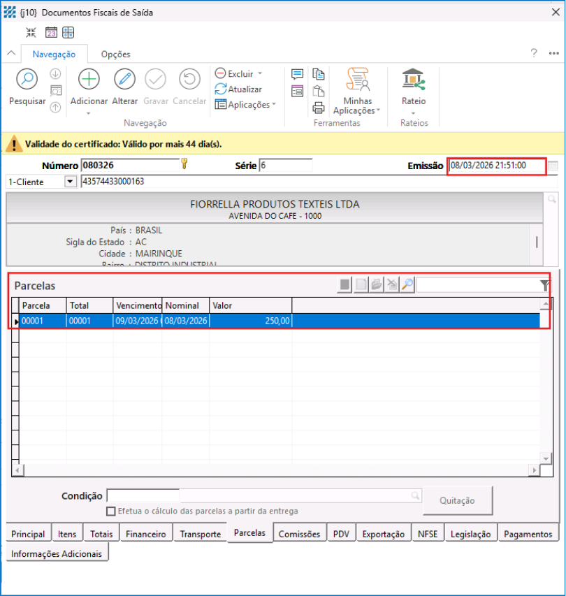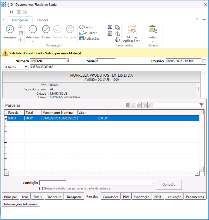 Esta guia tem como objetivo orientar o usuário na geração de uma parcela sem a necessidade de informar uma condição de pagamento. Dessa forma, mesmo que a condição de pagamento não seja preenchida, o sistema estará configurado para gerar automaticamente uma única parcela, considerando a data atual como data de vencimento e o valor total do documento para a parcela gerada..