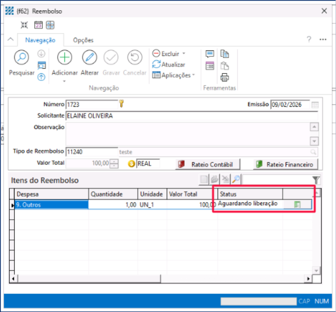 Ao cadastrar um reembolso, o StarSoft permite que os liberadores efetuem a liberação ou rejeição dos reembolsos.
