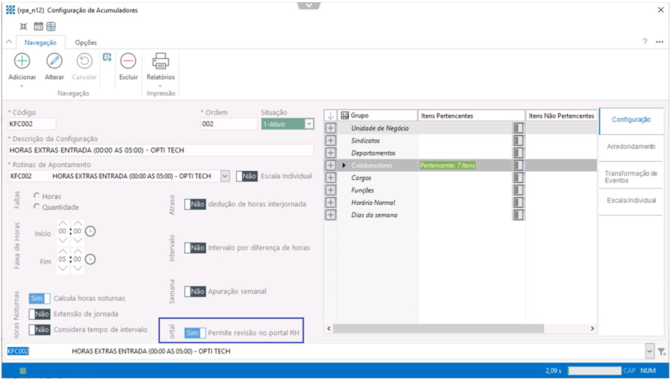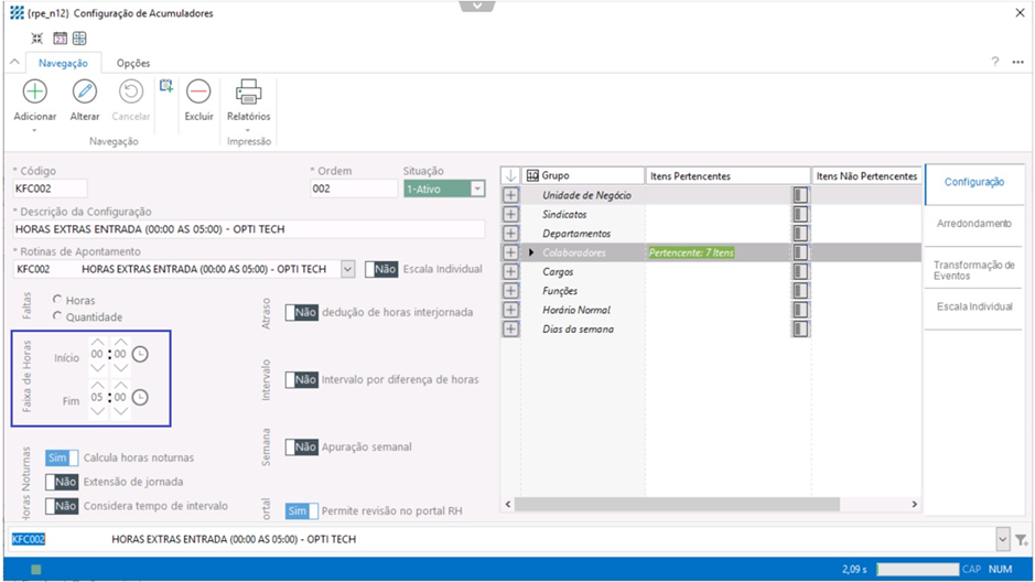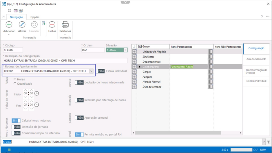 Com a rotina criada, esta será vinculada no cadastro do acumulador para que seja gerado a transformação de evento na manutenção do ponto.