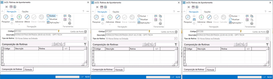 Abaixo exemplos de rotinas referente a Hora Extra na Entrada: