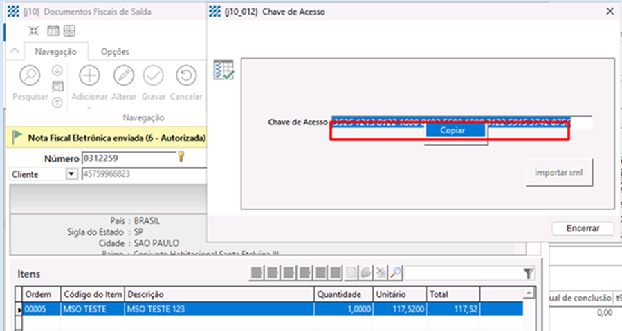 funcionalidade de cópia e colagem da Chave de Acesso, facilitando sua