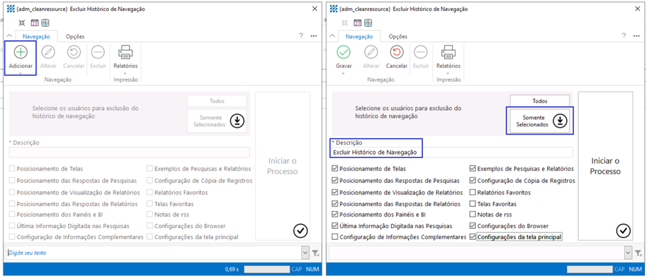 4. Utilize o botão Somente Selecionados e localize o seu usuário para excluir o histórico;
