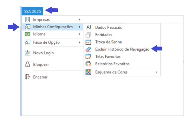 A limpeza de histórico é recomendada para corrigir comportamentos inconsistentes, apresentações de mensagens ou melhorar o desempenho do sistema em pesquisas e emissões de relatórios.