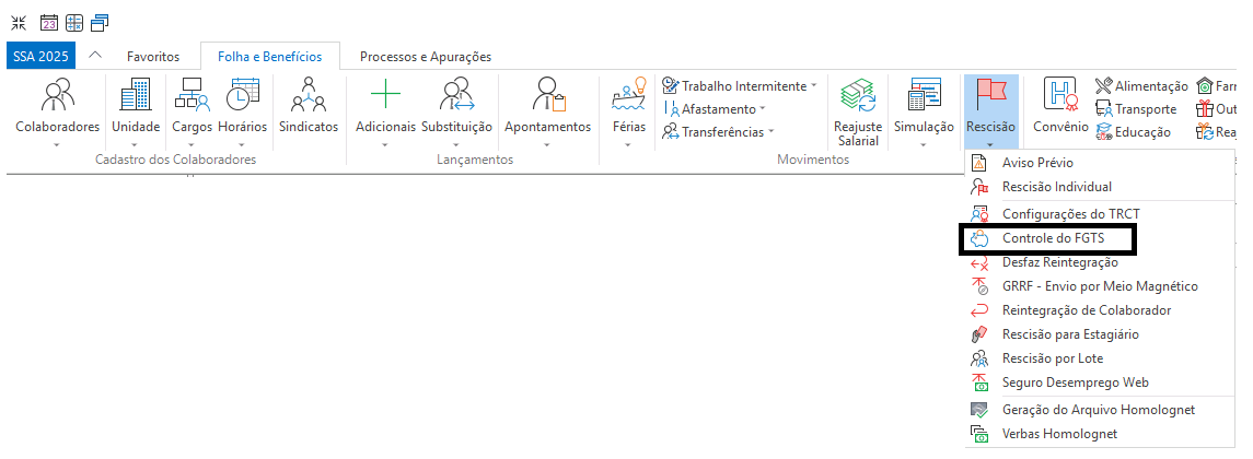1 - Revisar se o controle do FGTS foi preenchido corretamente no SSA antes de efetuar o cálculo da Rescisão;