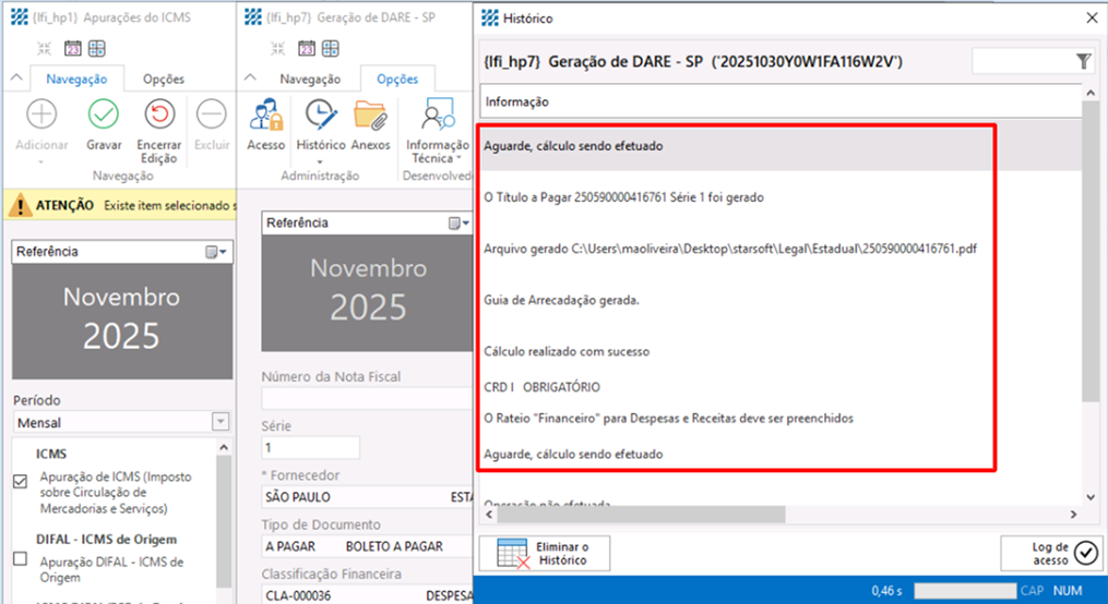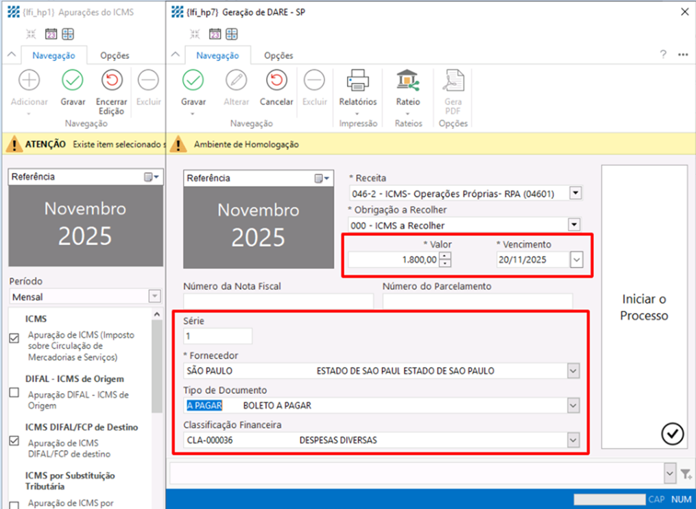 – Após configurar corretamente o parâmetro e realizar a apuração do imposto,