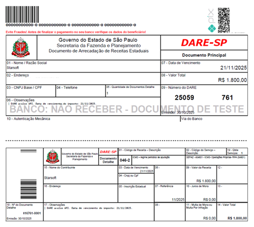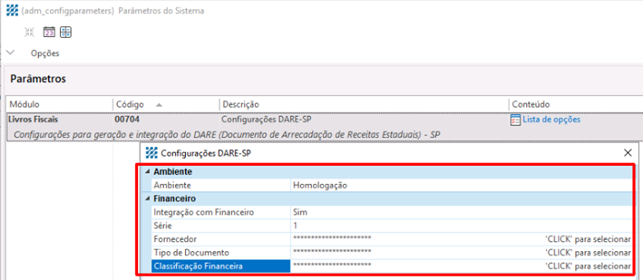 – Para habilitar a geração do DARE-SP, é necessário configurar o parâmetro