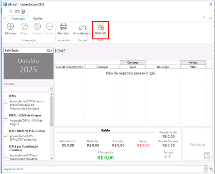 do Estado de São Paulo, diretamente na tela de Apuração do Imposto.