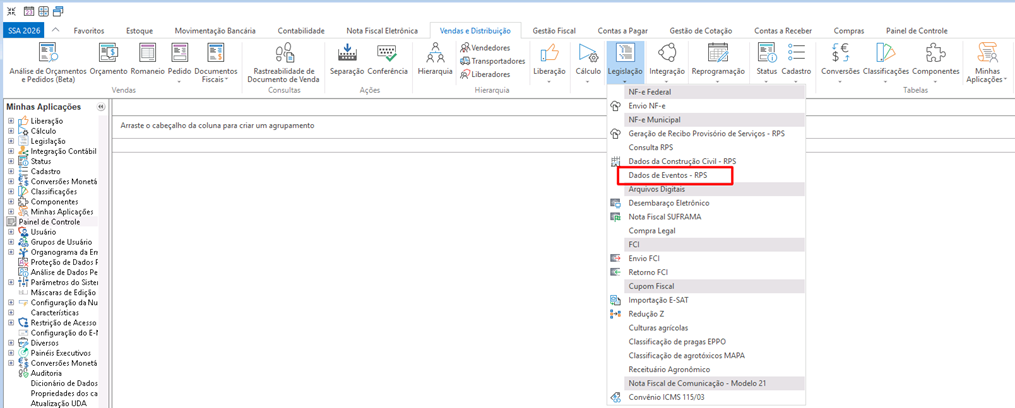 – A tela de Grupo de Eventos RPS está disponível no menu Legislações do módulo