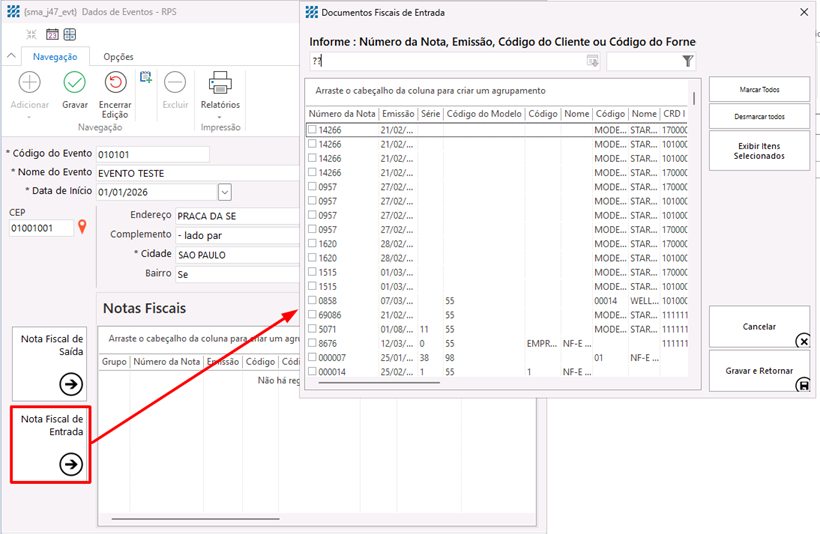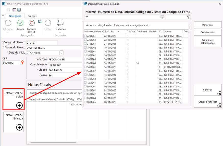 – Ao emitir os Documentos Fiscais relacionados ao evento, o sistema permitirá