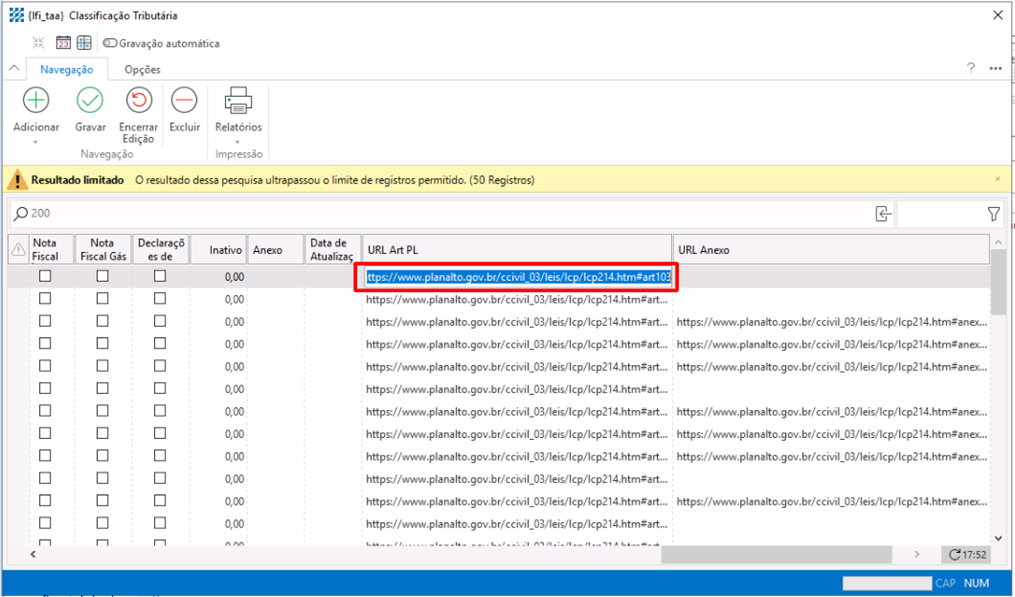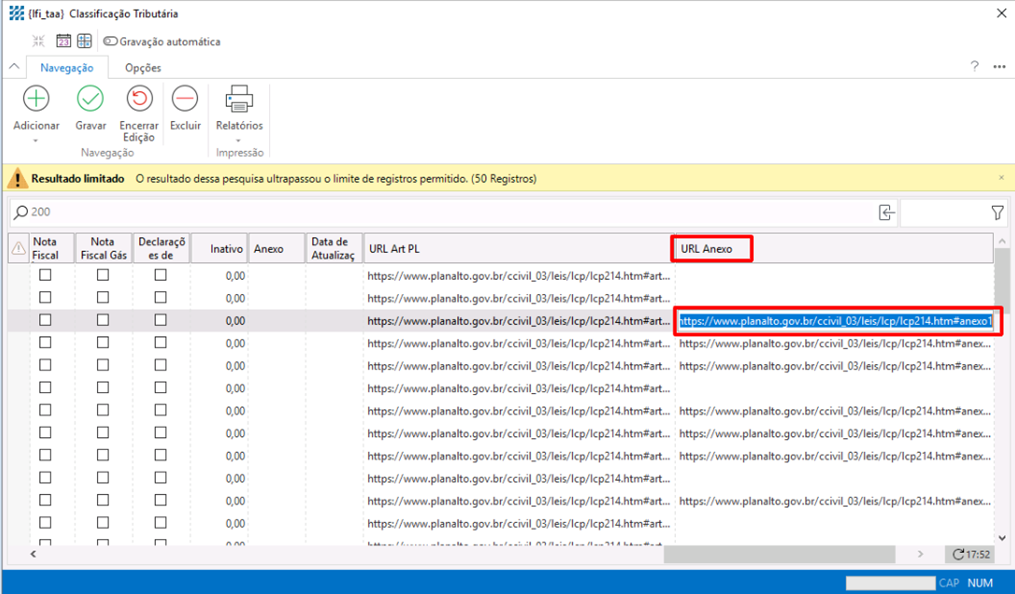 – A tela agora exibe a URL do artigo correspondente da Lei Complementar nº 214