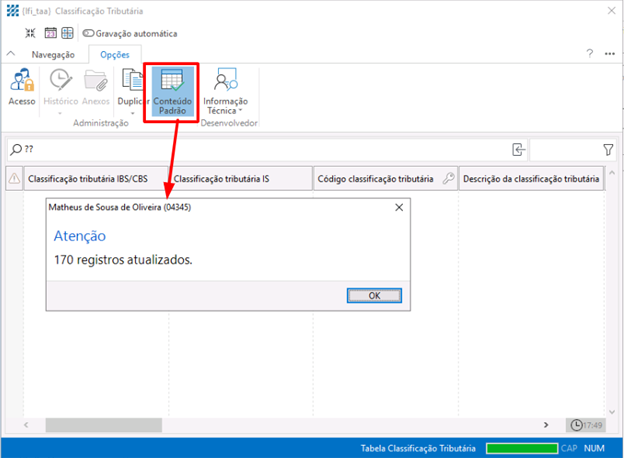 – Ao acessar a tela de Classificação Tributária, o usuário poderá visualizar