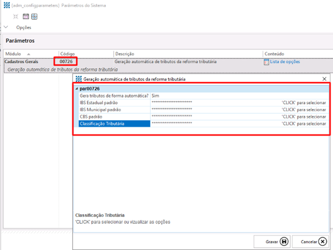 Melhorias para atender a Reforma Tributária: Parâmetro 726 - Versão 2025.11.2142