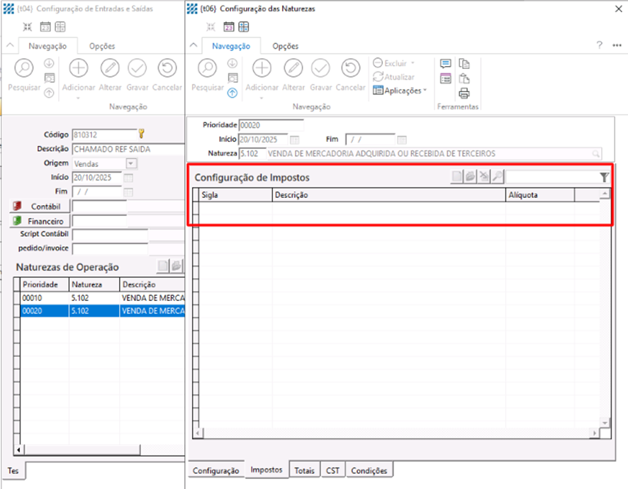 estejam configurados na Configuração de Entradas e Saídas (TES), o sistema