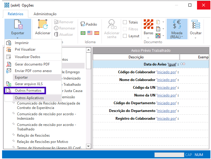 emissão do relatório, por gentileza selecionar a Opção Outros Formatos >