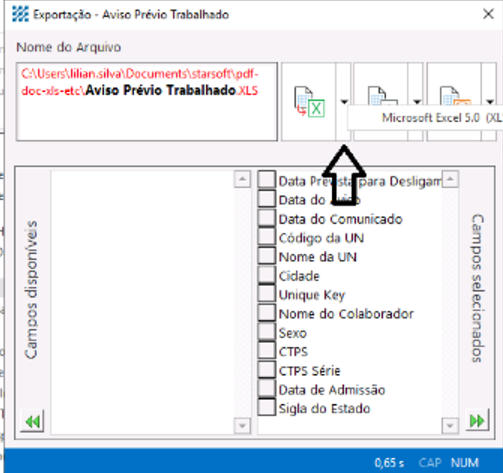 Exportar > Selecione na seta a opção Microsoft Excel 5.0