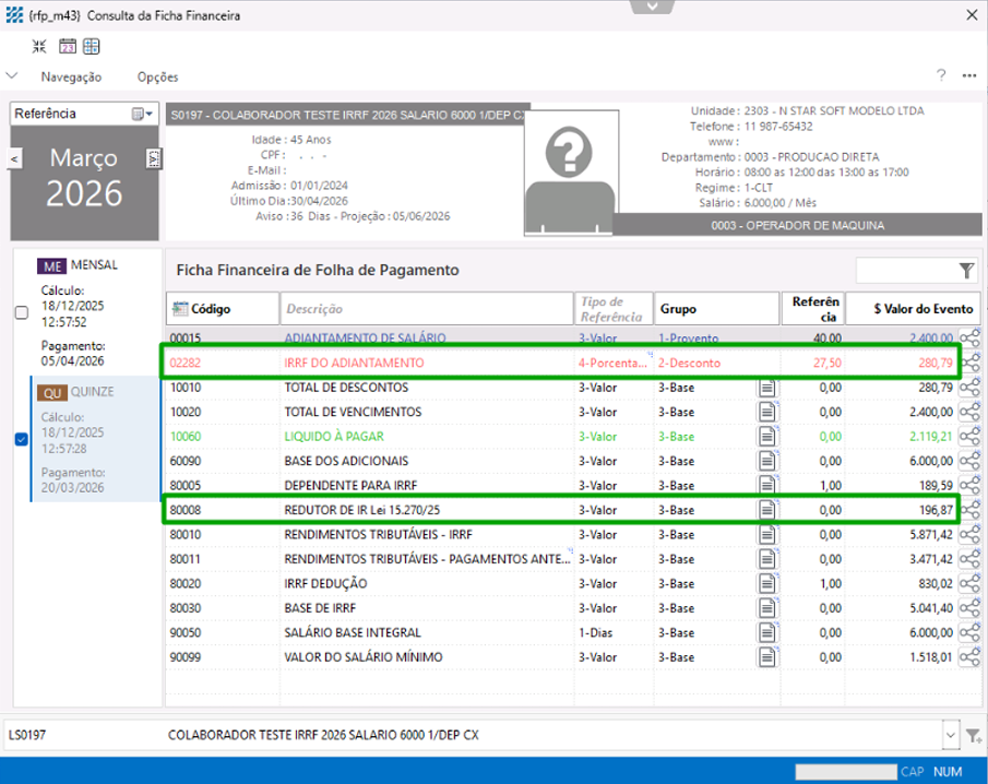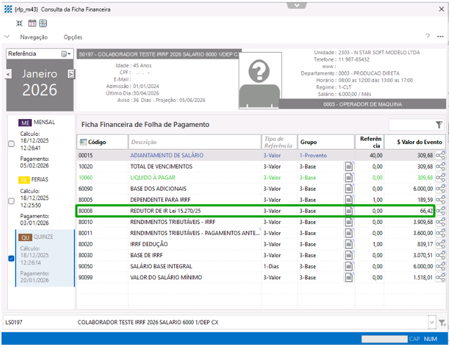 No sistema Starsoft, foi criado o evento 80008 – Redutor de IR Lei nº 15.270/25, que será gerado automaticamente a partir de 01/2026.