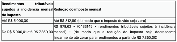Após o cálculo do imposto, será aplicada uma redução (redutor), que pode: