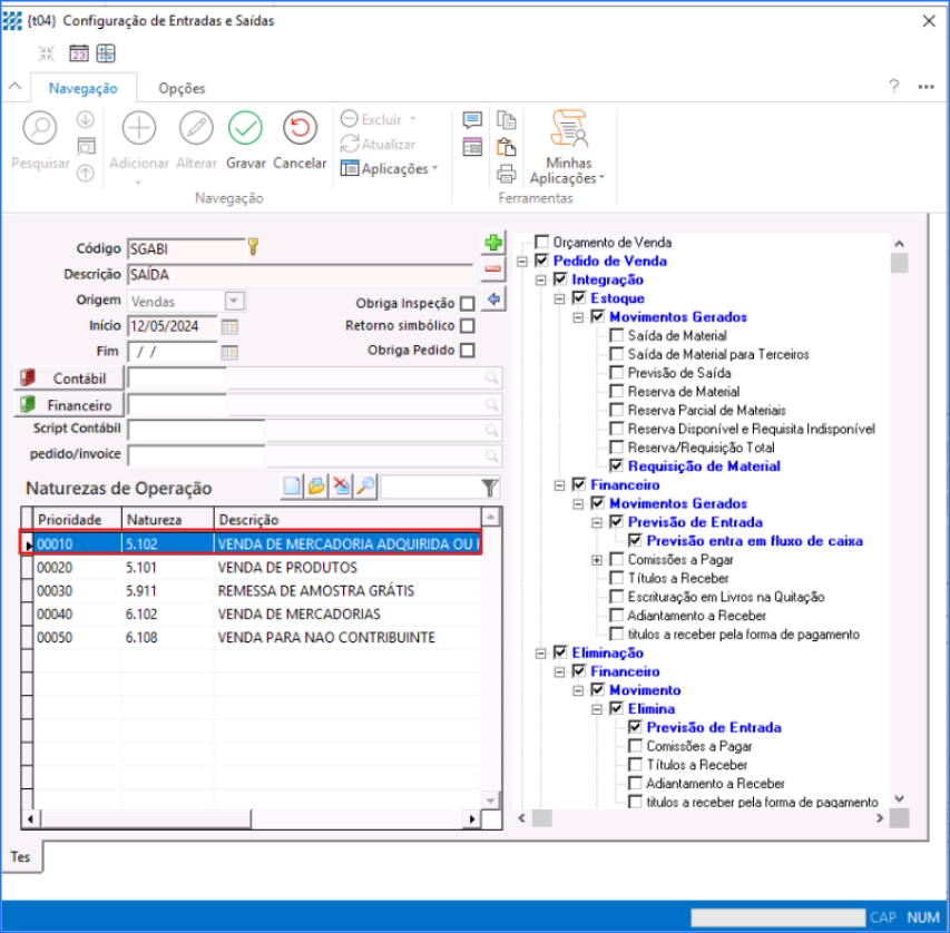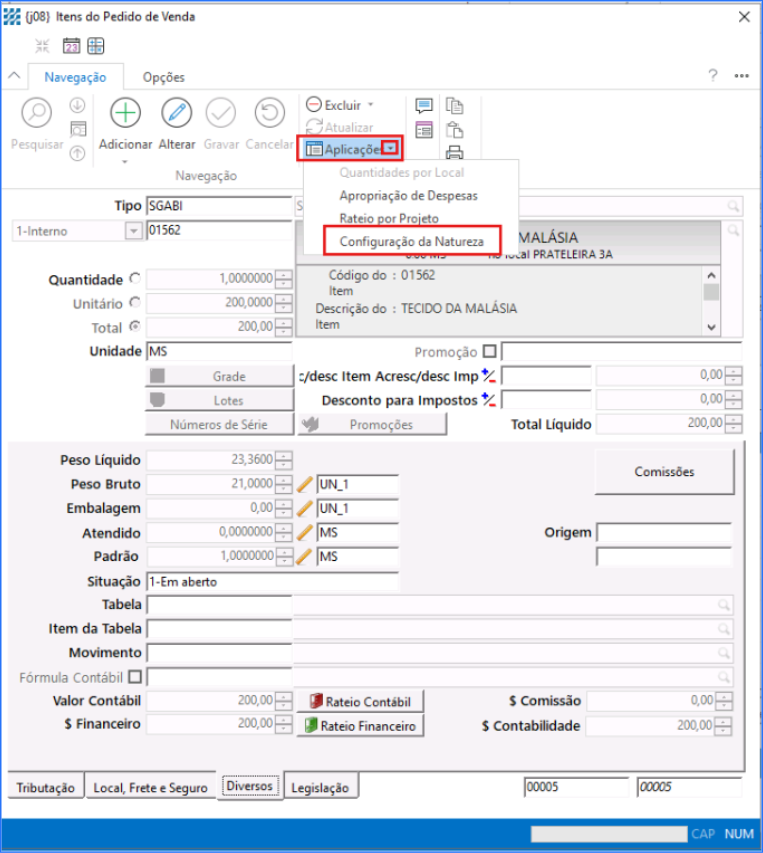 1- Acesse o menu superior e clique em Aplicações > Configuração da Natureza.