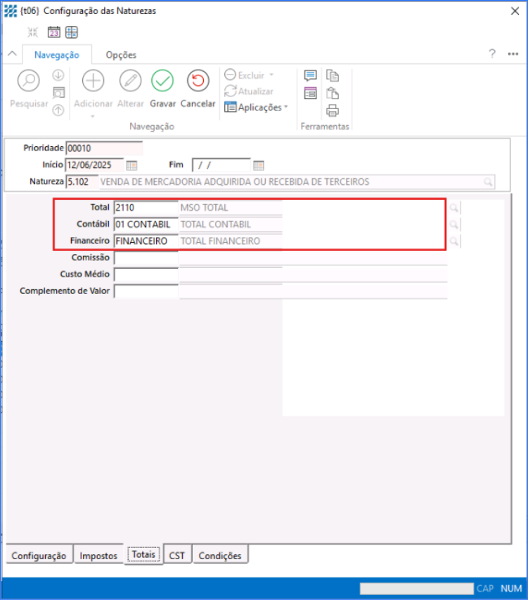 5- Na aba Totais, confirme se todos os totalizadores estão devidamente preenchidos com suas respectivas fórmulas. Caso algum totalizador não possua fórmula vinculada, associe a fórmula correspondente ao cálculo desejado.