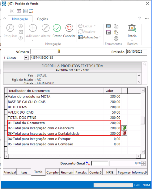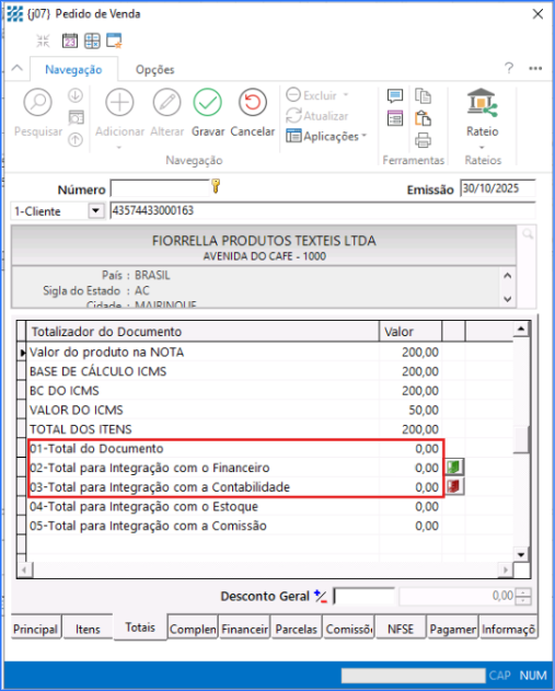 6- Ao associar a fórmula nos campos correspondentes, o sistema passará a exibir os totalizadores com os valores preenchidos corretamente.