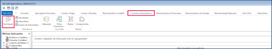 1° Acesse o módulo > Controle de Reembolso > Solicitação.
