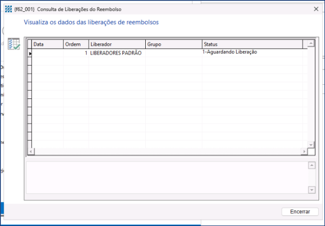 Status do Reembolso: é preenchido automaticamente pelo sistema conforme o andamento do processo.