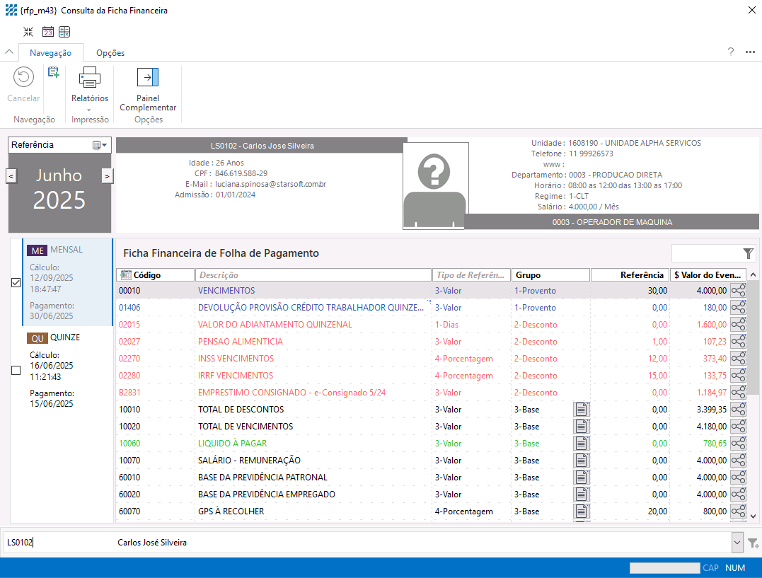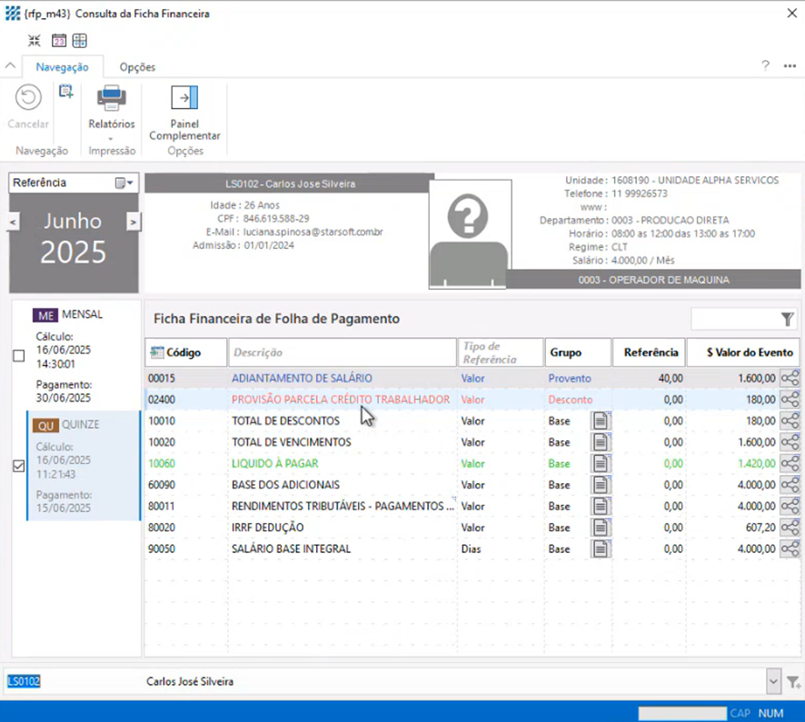 02015-Valor do adiantamento quinzenal – com valor do adiantamento;