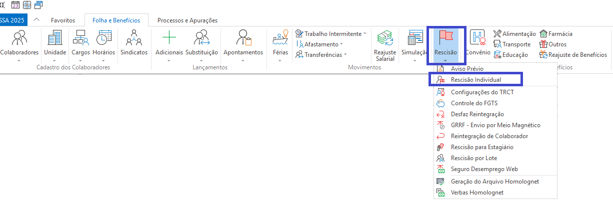 Para cadastrar uma rescisão individual, siga os passos abaixo: