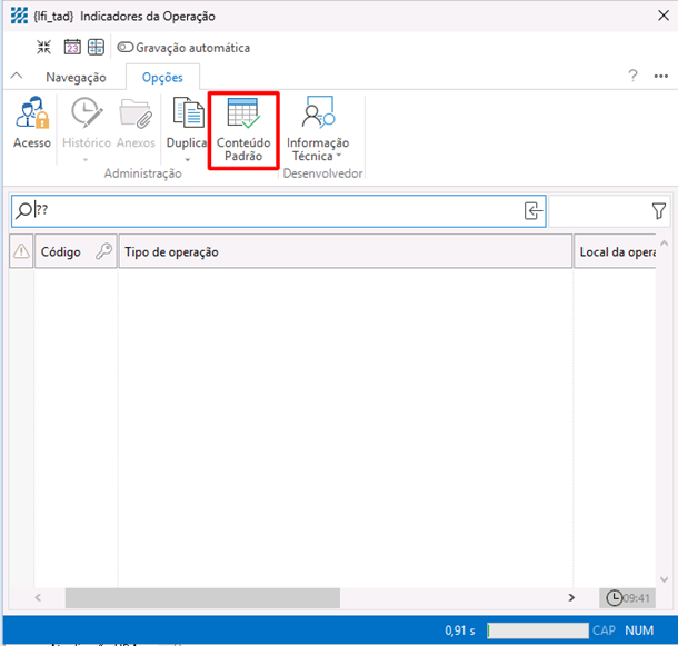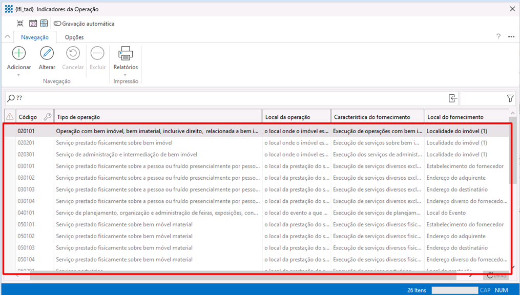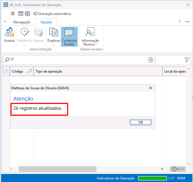 para que o sistema carregue os códigos de Indicadores de Operação
