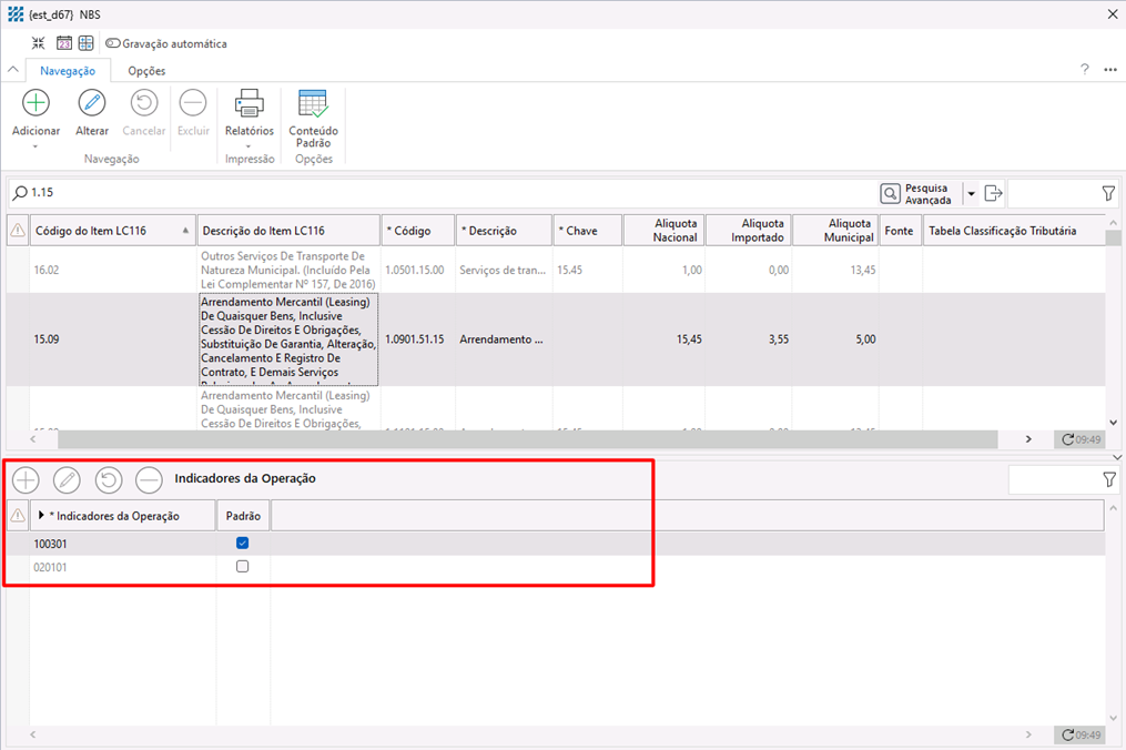 Operação poderão ser vinculados diretamente na tela de Cadastro de NBS,
